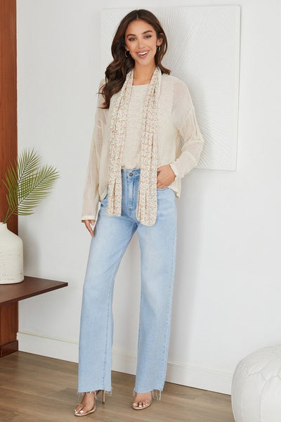 This three-piece layering set combines timeless elegance with practical versatility. The foundational floral print tank is crafted from pure cotton for breathability and easy care, while the coordinating long-sleeve crochet top in viscose-elastic blend offers a refined drape with gentle stretch for comfortable movement. The included scarf completes the ensemble, allowing you to adjust coverage and style throughout the day. Whether worn as a complete coordinated look or separated for individual styling, each piece delivers quality construction and coastal-inspired design that transitions seamlessly from season to season.