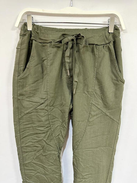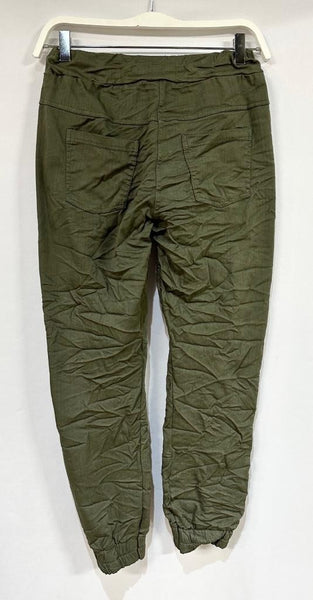 Cami Cuffed Crinkle Army Green Jogger