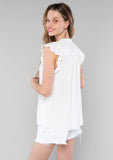 Faith Flutter Cap Sleeve Button Down Tie Neck Blouse