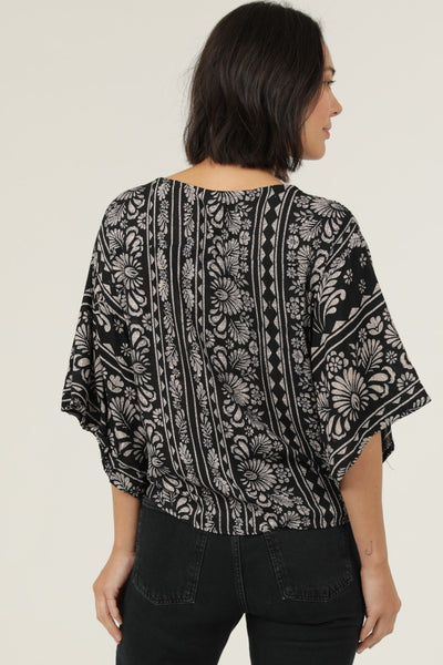 Talia V Neck Kimono Sleeve Tie Waist Printed Top